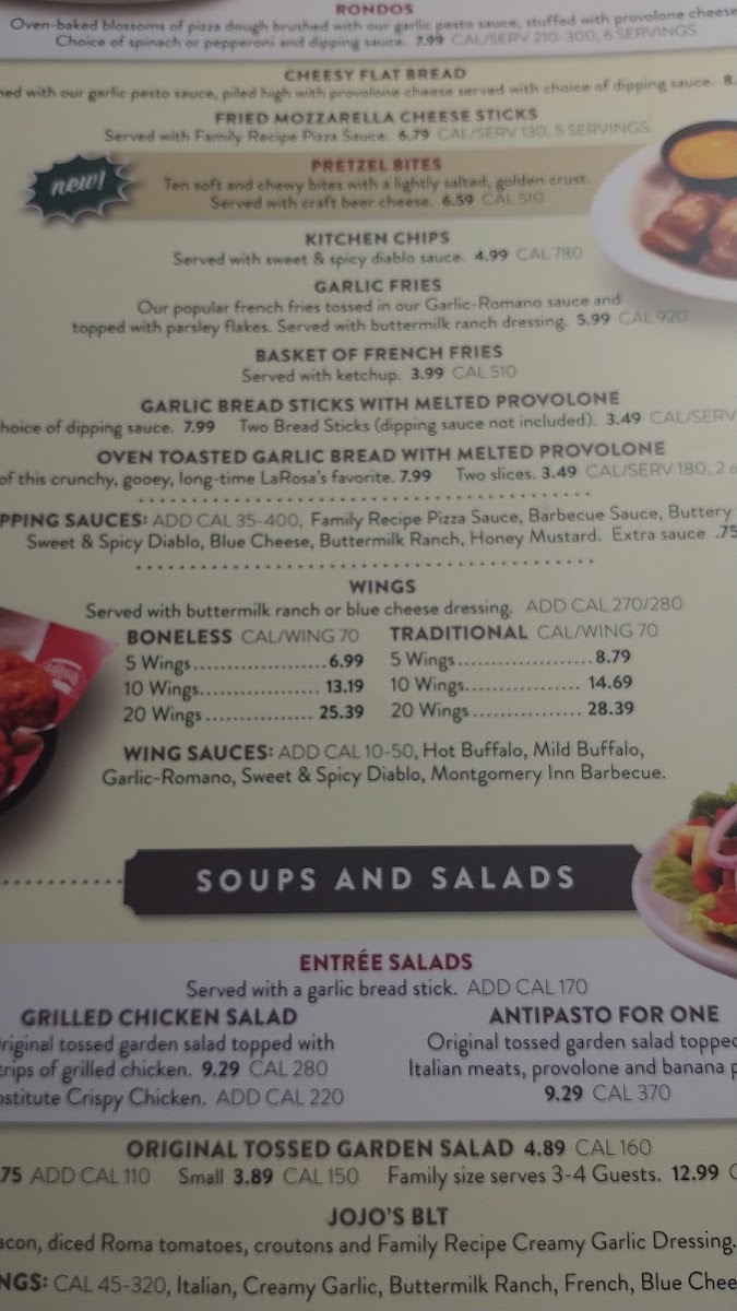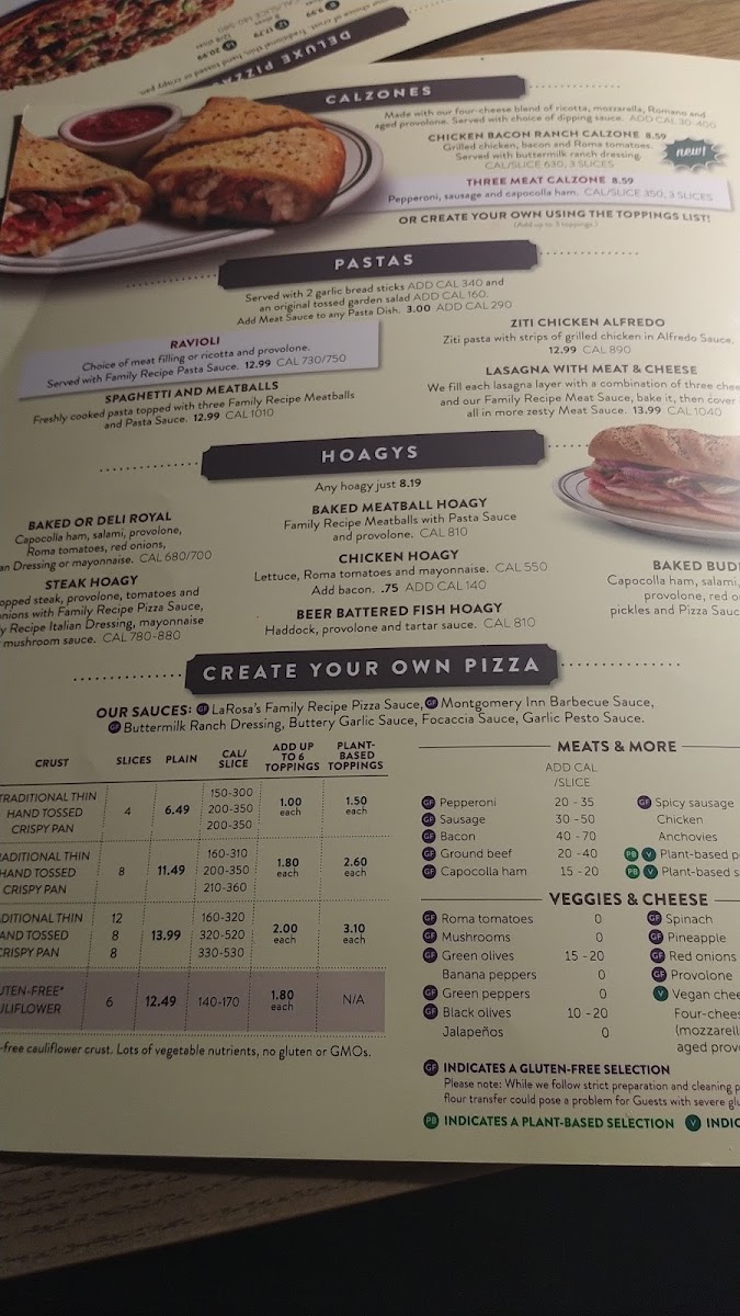 Traditional crust, with your choice of sauce and toppings. SAUCES LaRosa's Family Recipe Pizza Sauce, Montgomery Inn Barbecue Sauce, Focaccia Sauce or Ranch Dressing TOPPINGS Pepperoni, Sausage, Bacon, Ground beef, Capocolla ham, Spi...